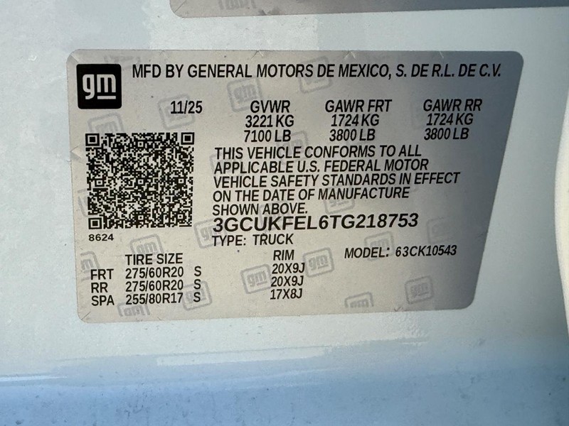 - VIN : 3GCUKFEL6TG218753