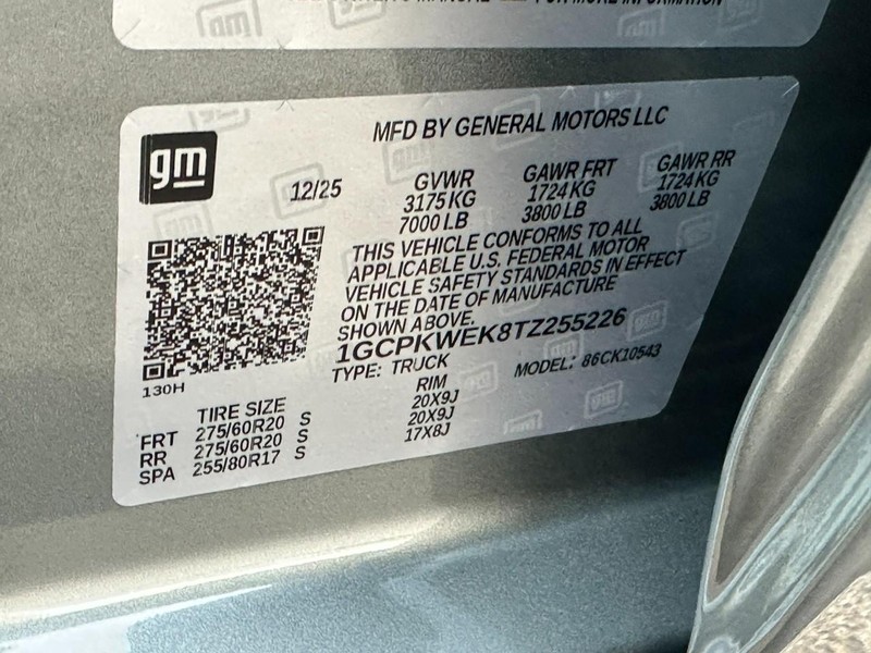 - VIN : 1GCPKWEK8TZ255226