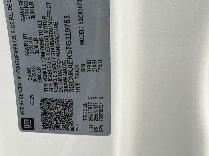 - VIN : 3GCNKAEK5TG119761