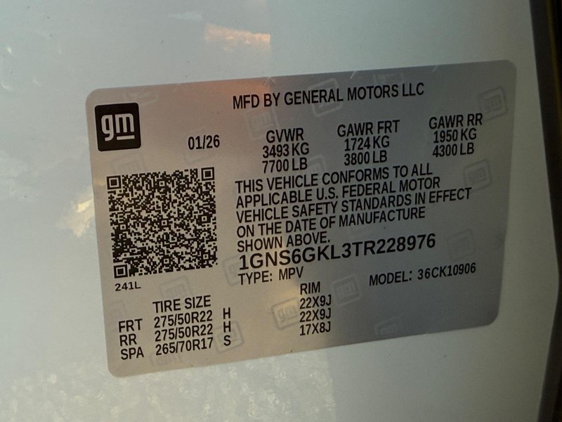- VIN : 1GNS6GKL3TR228976