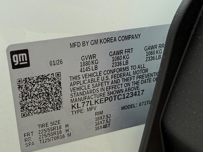 - VIN : KL77LKEP0TC123417