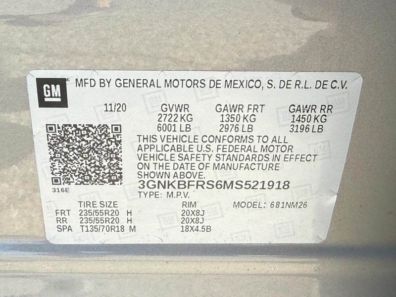 - VIN : 3GNKBFRS6MS521918