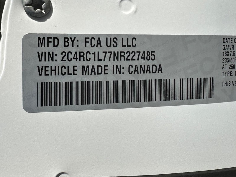 - VIN : 2C4RC1L77NR227485