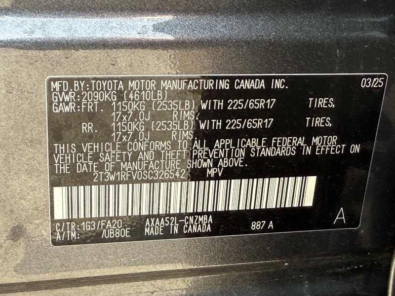 - VIN : 2T3W1RFV0SC326542